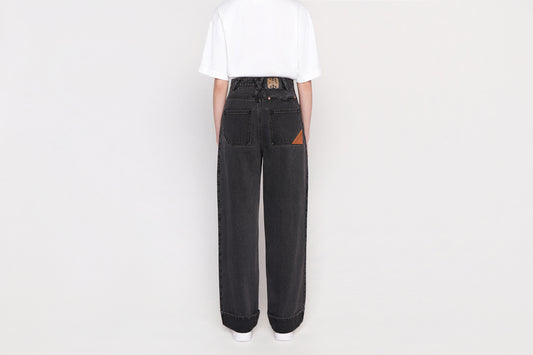 • Leather logo patch on back pocket